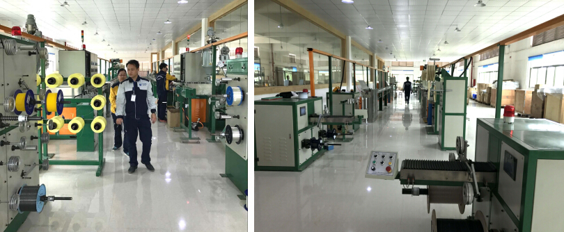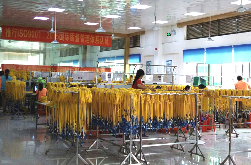 In connector & cable assembling workshop, the fiber optic patch cord and pigtails are produced.
