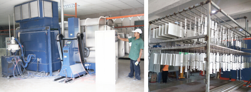 YHT painting workshop has mechanical automatic and manual spraying equipment for electrostatic powder spraying of metal products.