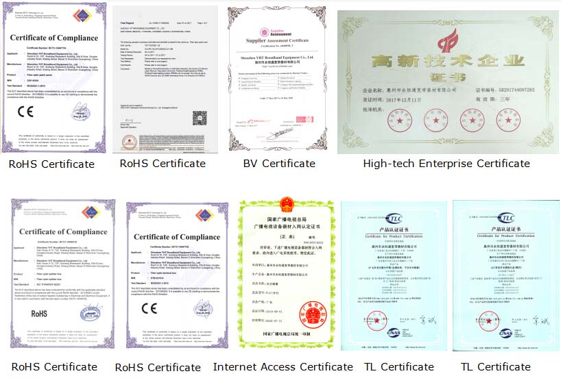 The main products include fiber optic patch panel, distribution box, ODF, FTTH box, fiber optic splice closure, optic splitter box, cabinet, connector, fiber patch cord, pigtail, adapter etc. which widely used in FTTx, GPON, CATV, telecommunications.