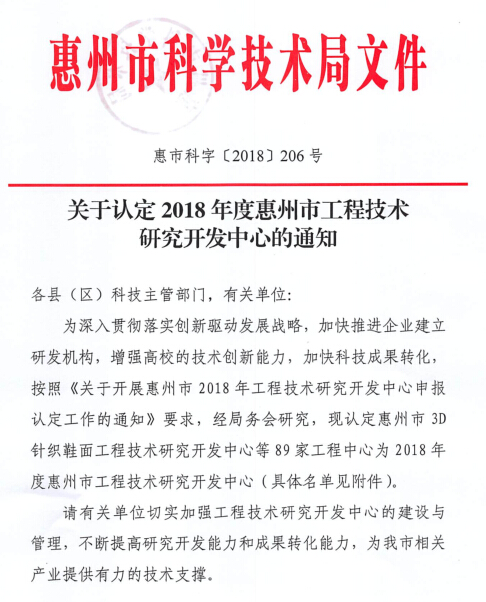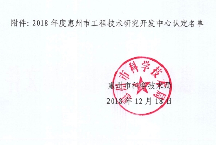 YHT was awarded as Huizhou Engineering Technology R & D Center