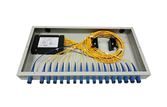 This fiber optic splitter patch panel can load optical splitter for fiber cable splitting, splicing, connection and distribution.  It is 19inch rack mounted, fixed type.