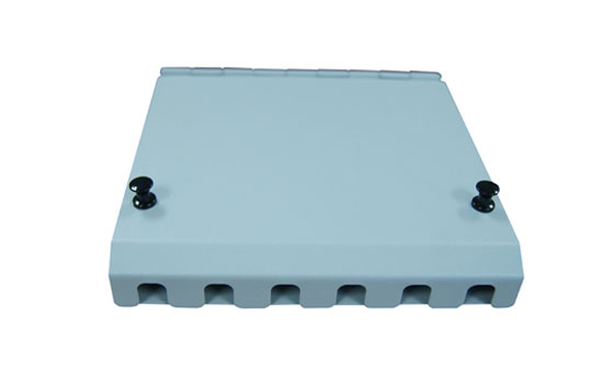OTB-I06 is a metal fiber optic terminal box with 6 SC simplex adapter ports for fiber connection and distribution. It is indoor wall mounted box in FTTx project.