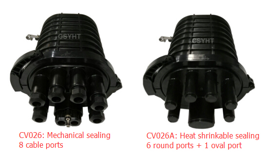 CV026 is Junction boxes Domo for cables of 24, 60, 96, 144, 288 that support fiber splicing and protection.