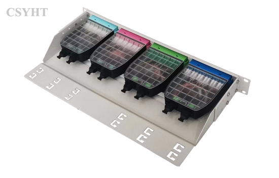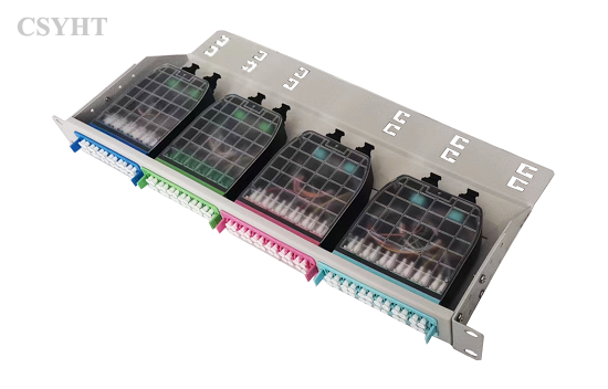 It is fixed type 1U height for 19inch rack mounted application. It can 4pcs MPO cassettes HD-07 for max. 96 fiber connection and distribution.