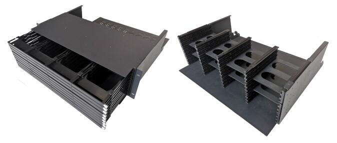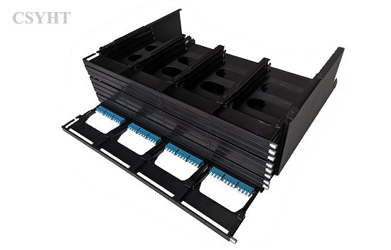 With 9pcs sliding trays, load 36pcs MPO cassettes HD-08