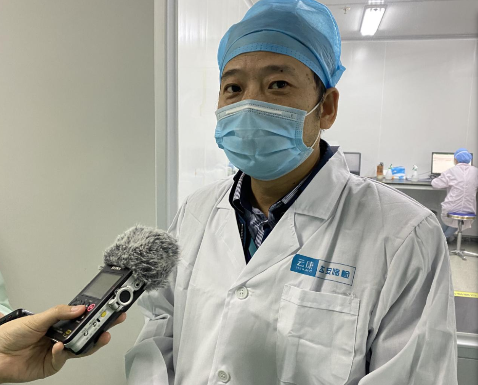 云康中心實驗室主任尹杰接受記者采訪。攝影 朱子榮