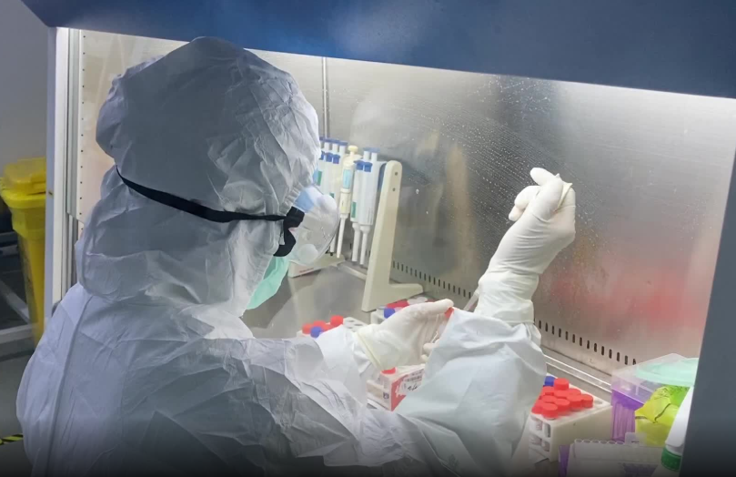 云康中心實驗室工作人員檢測新冠病毒樣本。拍攝 朱子榮