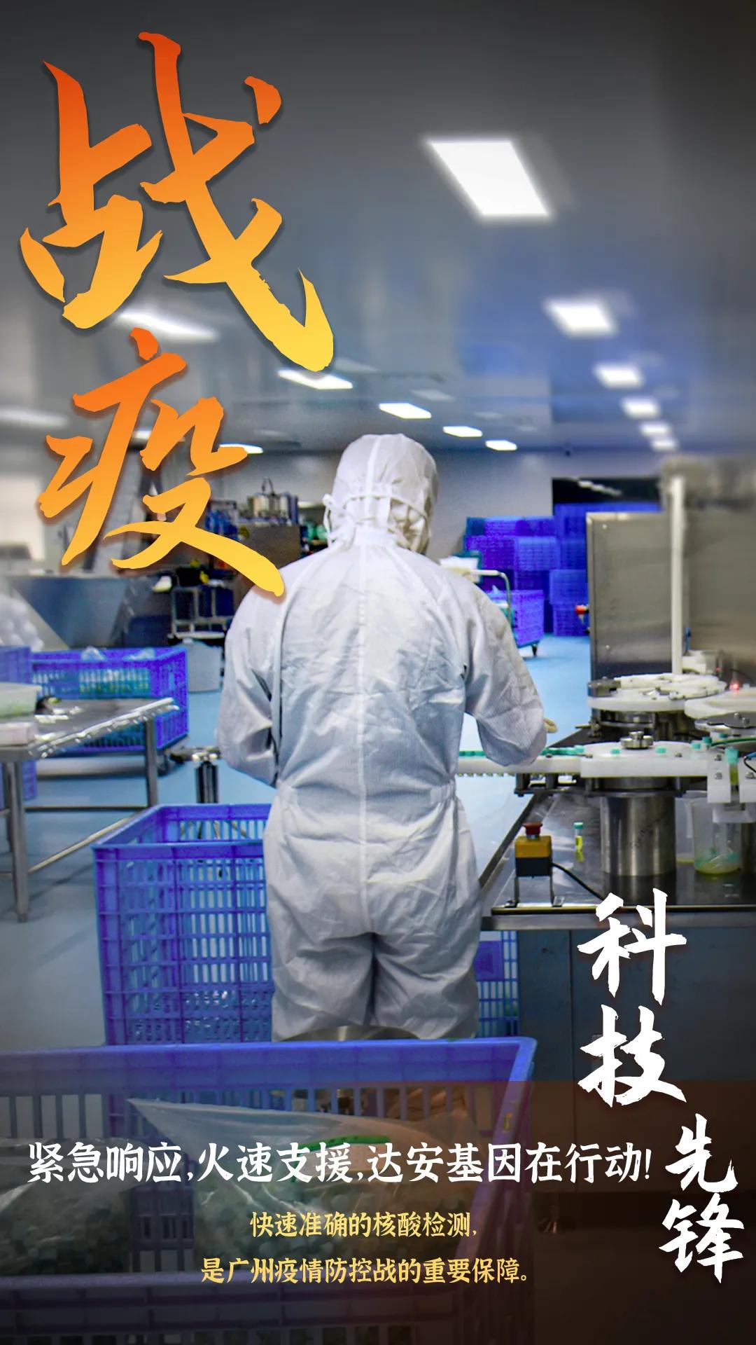 如此高效的檢測背后,是硬核的核酸檢測技術。 達安基因,中國核酸檢測軍團的龍頭企業,總部就在廣州。 疫情突然來襲,在廣州巿委、市政府、巿國資委黨委和市財政局的堅強領導下,廣州金控下屬達安基因股份有限公司第一時間響應,沖在抗疫最前線,積極提供檢測試劑耗材,保障全市需求,彰顯了國有企業擔當,扛起了廣州抗疫的大旗。 為充分保障檢測試劑的供給,達安基因開足馬力,全速生產,根據市場所需,日產量可達100萬人份以上。