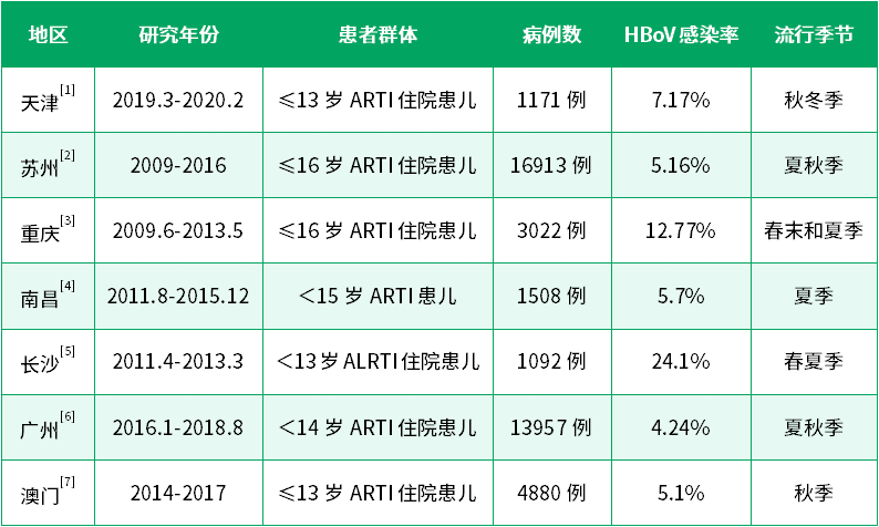 HBoV感染呈全球性分布,一年四季均可發生,季節性規律不明顯,不同地區的流行季節存在差異。