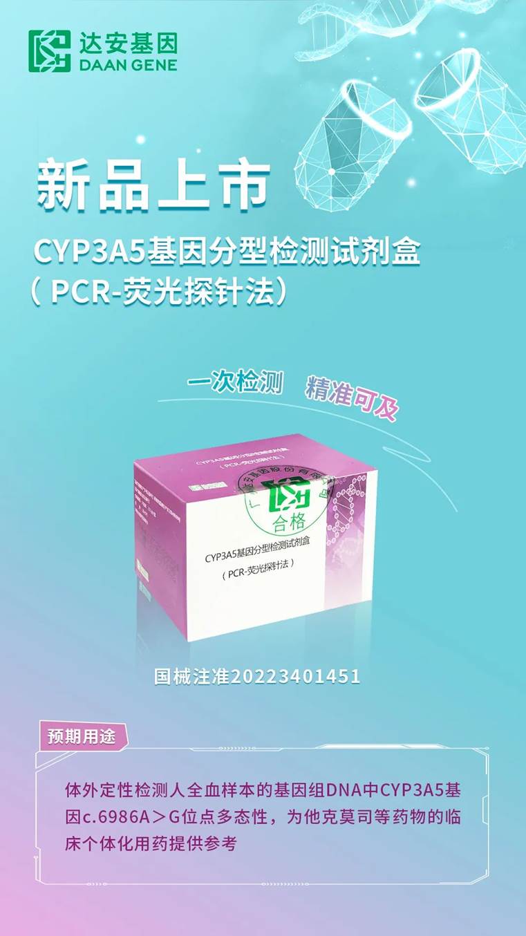 ?2022年11月2日,達(dá)安基因CYP3A5基因分型檢測(cè)試劑盒(PCR-熒光探針?lè)ǎ┇@得國(guó)家藥品監(jiān)督管理局批準(zhǔn)上市,注冊(cè)證編號(hào):國(guó)械注準(zhǔn)20223401451。