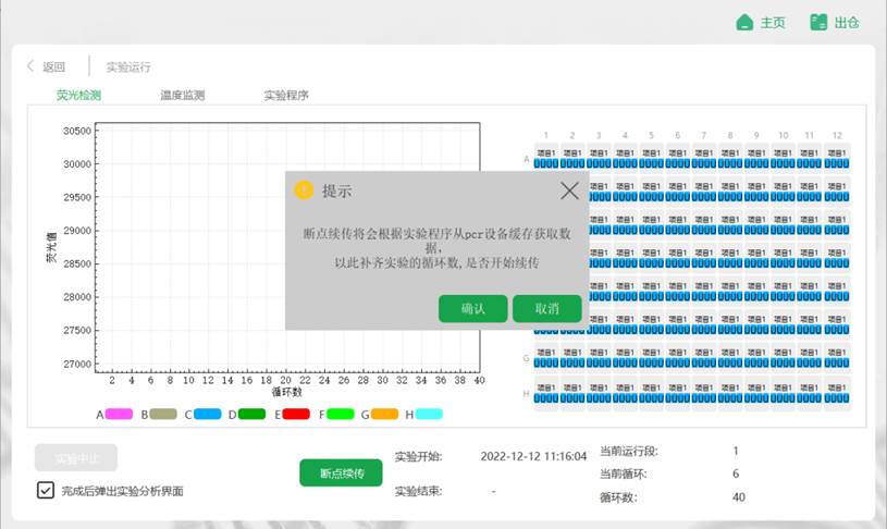 運行程序意外中止或退出后,若儀器仍在運行中,可繼續(xù)收集實驗過程中的溫度信息和熒光數(shù)據(jù);運行完成后可重新下載實驗的所有熒光數(shù)據(jù)以免因程序意外中止或退出后的結(jié)果丟失。