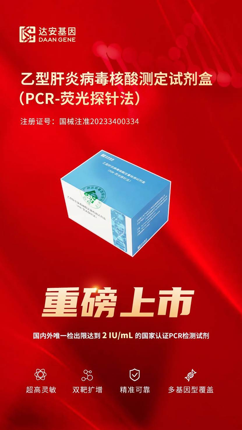近日,達安基因最新研制的乙型肝炎病毒核酸測定試劑盒(PCR-熒光探針法)取得國家藥品監督管理局(NMPA)三類醫療器械認證,注冊證號:國械注準20233400334,助力早日消除病毒性肝炎。