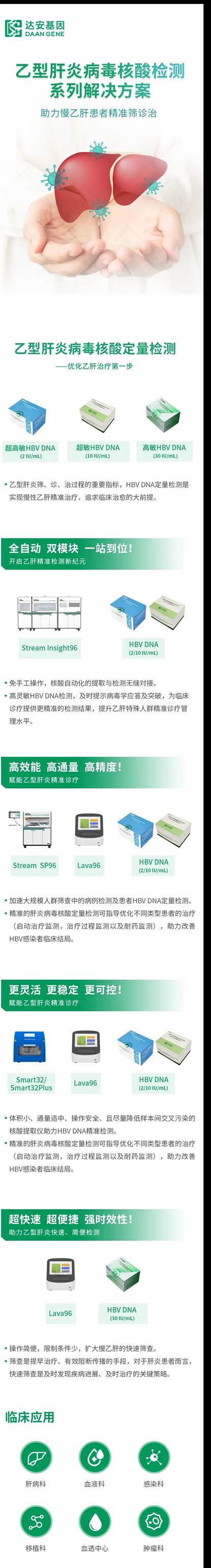 精準檢測,幫助臨床醫生在慢性乙型肝炎診斷、抗病毒治療監測、隨訪中做出合理決策,達安基因始終致力于推動感染性疾病診療水平的不斷進步,提供分子診斷整體解決方案,助力以患者為中心的全病程管理,為實現WHO提出的2030年消除病毒性肝炎而努力。